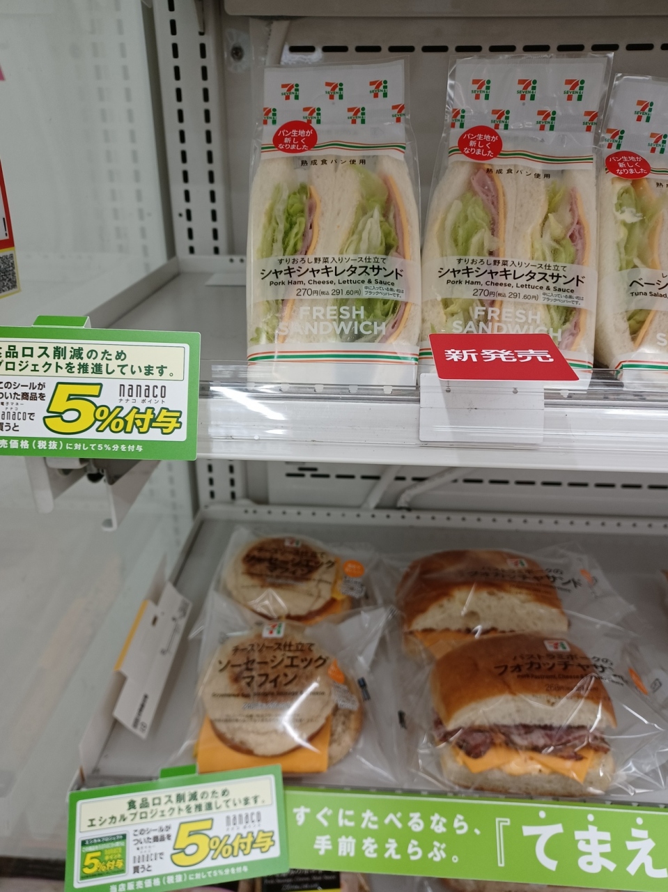 こじんまりとしており、街中にあるセブンイレブンと同じラインナップです。