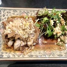油淋鶏のお肉の下に、根菜類が敷いてあって、それが油淋鶏のソースとマッチしてなかなか美味しかった。