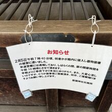 2月5日 午前7時40分頃 何者かが 殿内に侵入し、