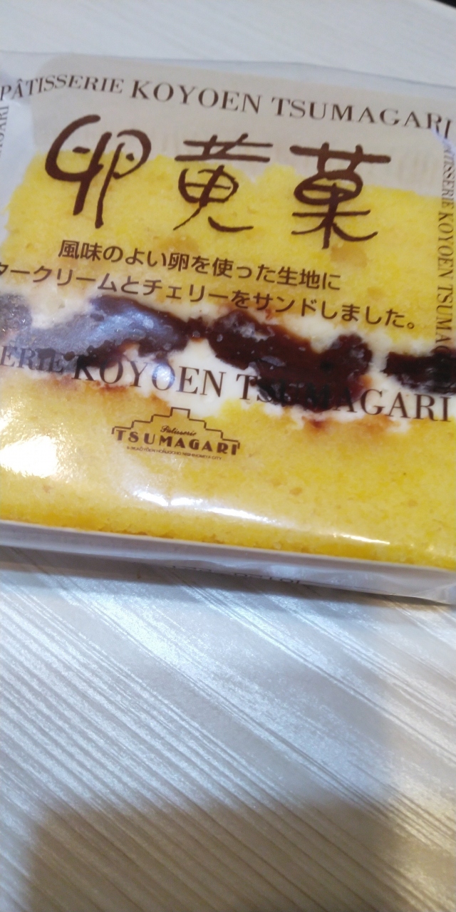 卵たっぷりの黄色いスポンジの間にバタークリームとサワーチェリーをサンド。