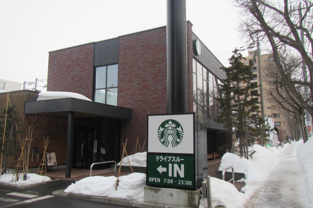 公園散策の後は、公園の北側、北1条宮の沢通りの向かいにあるスターバックスコーヒーでの休憩がおススメです。