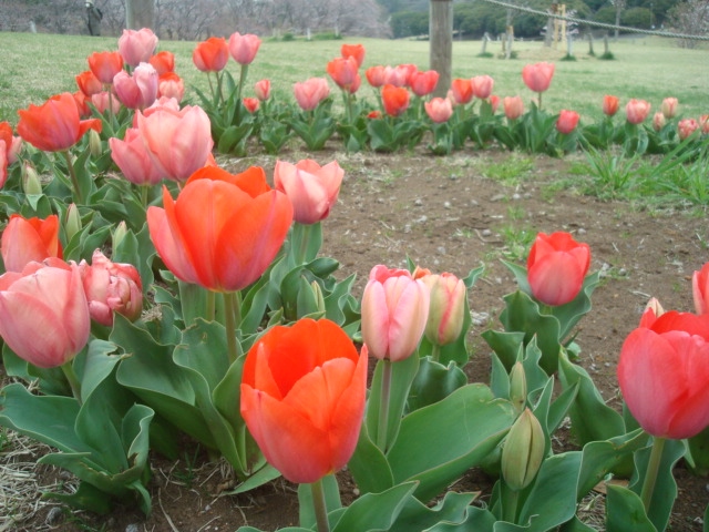ソメイヨシノはまだ咲き始めでしたが、芝生広場では、菜の花や近隣の小学生が植えたチューリップが咲いていてきれいでした。