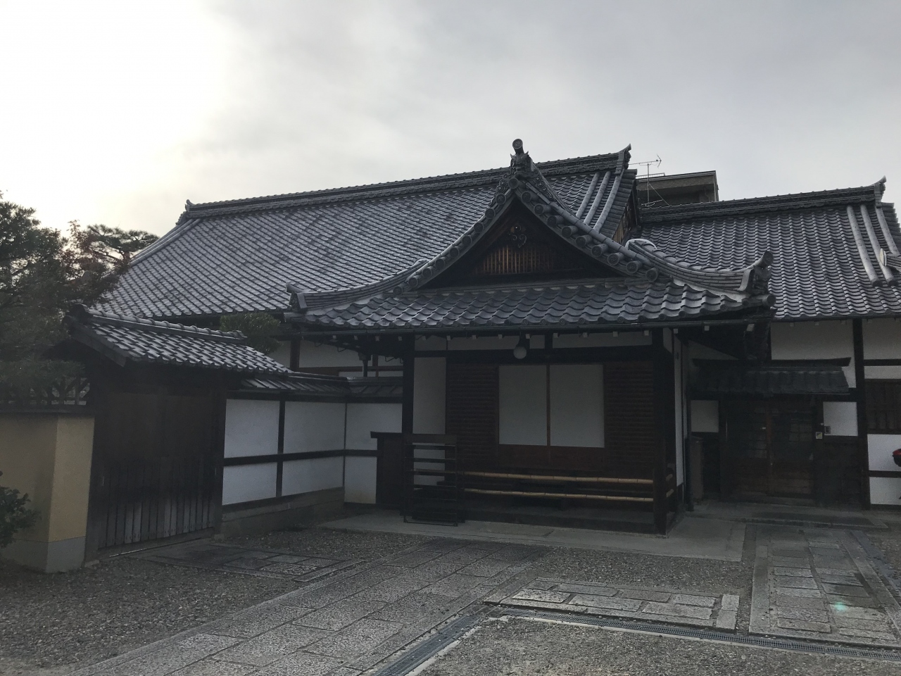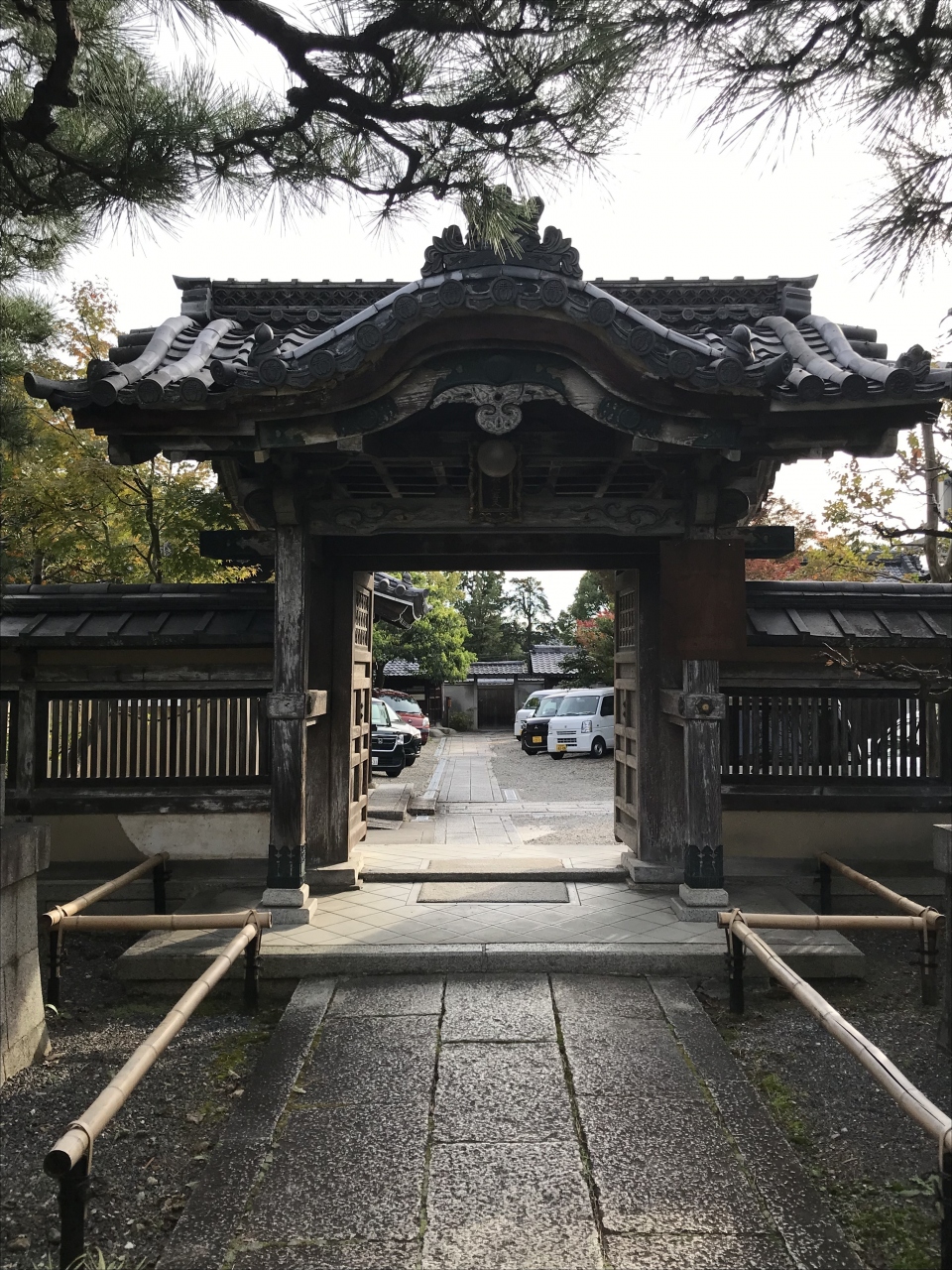 興雲庵は、京阪電車「祇園四条」から南東へ徒歩6分くらいの場所にあります。建仁寺の塔頭寺院で、建仁寺の北側入り口近くにあります。建仁寺を参拝した後にこちらにも立ち寄りました。寺門にも陀枳尼尊天の大きな石碑があり、目立っていました。興雲庵の境内には陀枳尼尊天が祀られ、豊川稲荷とも言われているようです。「陀枳尼尊天」は、白い狐に乗った天女の姿として描かれ、稲荷神と同一視されているそうです。寺門の前にお稲荷さんでよく見かける赤い鳥居があり、少し違和感がする寺院です。北に面して「豊川陀枳尼尊天」の扁額があがった古い門は、とても重厚な建物で見どころを感じることができました。