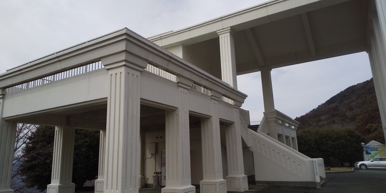 地中海の神殿のような造りになっています。基本はトイレ休憩のためのものでうが中に入ると展示スペースがあり、伊方町ご出身の