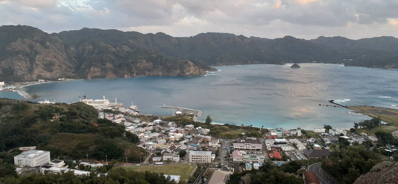 こちらは夕日は山に隠れてしまいますが、二見港は父島市街地を一望できます。