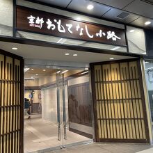 京都駅八条口1階の東側にある飲食店街で、新幹線や地下鉄、JR奈良線を利用する人にとっては便利なロケーションにあります。京都らしい和風な感じの店構えで、京都ならではのコーヒー店からチェーン店まで幅広いお店があります。観光シーズンだったので多くの人で賑わっていました。