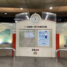 新幹線の出入り口となる、京都駅八条口にある小さな広場です。時計が設置されていますがそれ程目立たないので、待ち合わせ場所には向かないかもしれません。ただ、広場周辺にはコインロッカーも沢山あり、コンビニやお土産店、飲食店等様々なお店があるので便利です。