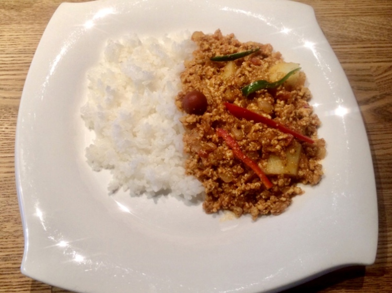 チーズをトッピングした方が、少しはマイルドになったかなぁ?行列のできるカレー店。キーマカレーのみで勝負するお店。一度食べてみる価値ありのお店。