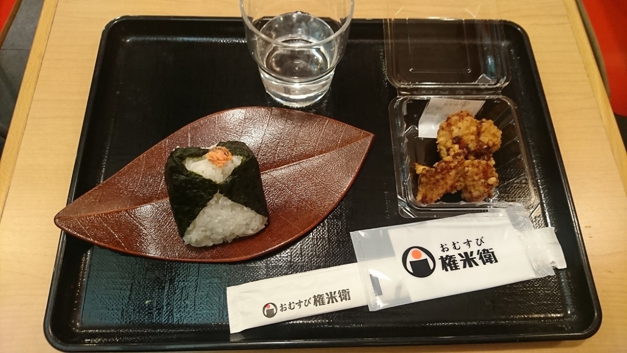 汐留の大型商業施設・カレッタ汐留の地下2階レストラン街にあるおむすびのお店です。夕食で鮭のおにぎりと鶏の唐揚げを店内のイートインコーナーでいただきました。コンビニのおにぎりと比較すると値段は高めですが、やはり味は上。早く安く食事を済ませたい時などに便利です。
