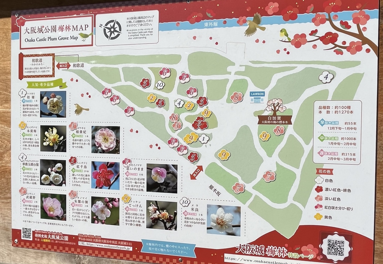 「大阪城」二の丸 東部分に 約1270本の 梅が植えられています。
