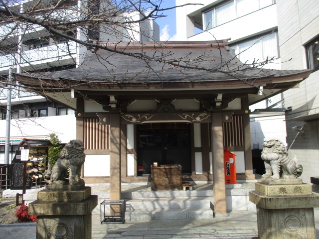 JR駒込駅北口から本郷通りを渡ると大國神社がありました。鳥居から境内、正面に本殿、右に社務所がありました。本殿の左右に獅子の像、古い桜の大木がありました。こじんまりとした神社ですが江戸時代に第11代将軍徳川家斉公が参拝した由緒ある神社です。地元の人によって綺麗に整備されてました。