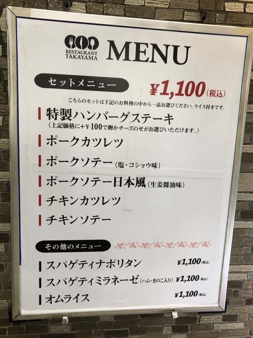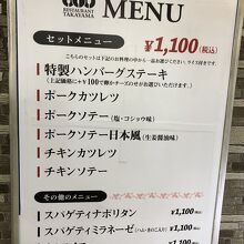 お店前の入口脇に貼付されたメニュー、どれにしよう