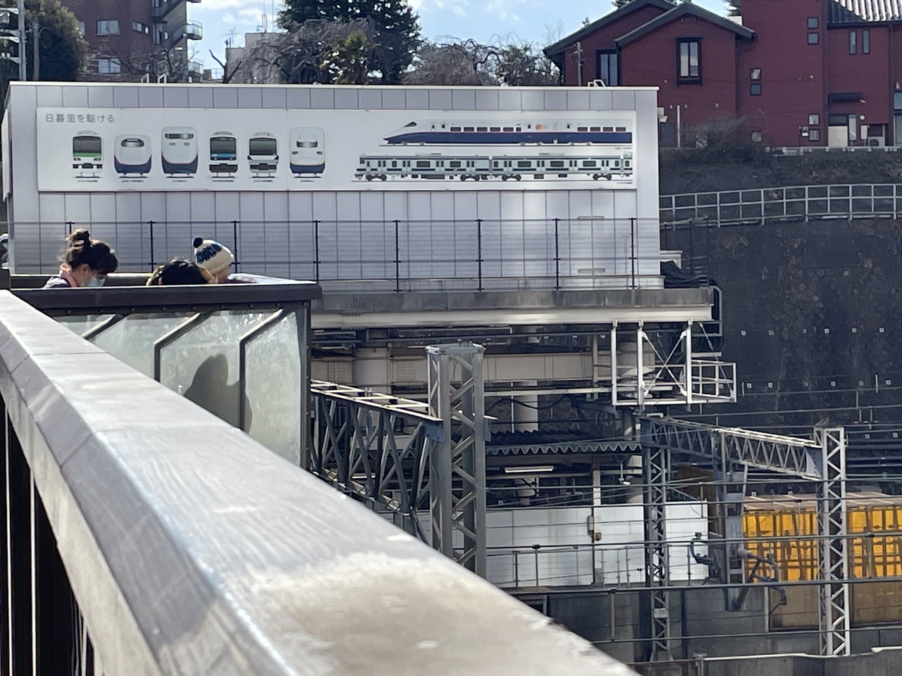 日暮里駅の西口と北口を結ぶ跨線橋です。橋の途中には展望デッキがあり、下を走る山手線、京浜東北線や新幹線、東北線、常磐線、そして京成線の電車を眺めることができ、まさに動く鉄道博物館です。休日の昼間はこども連れでいっぱいでした。