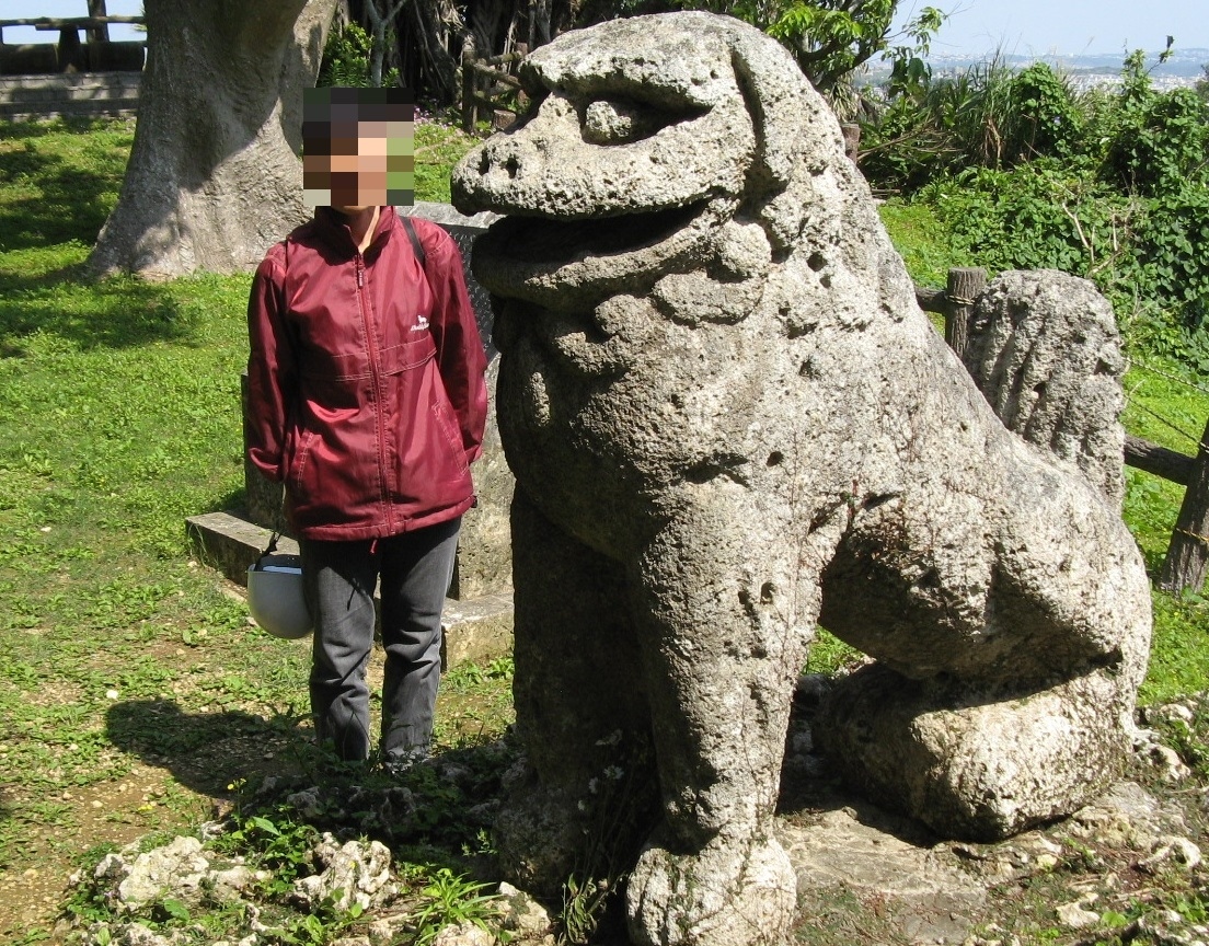 場所が判りにくかったですがグーグルマップを見てたどり着けました。現地にあった説明板によると17世紀後半に造られたもので県指定文化財になっています。沖縄戦での銃弾跡が痛々しい大獅子ですが、お顔はひょうきんで優しそうで癒されました。