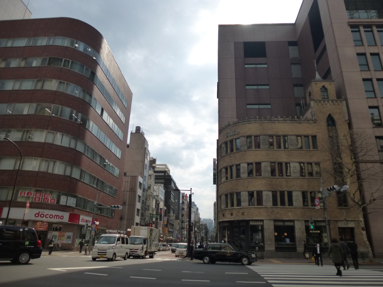 「堀商店」は外堀通りと赤レンガ通りの交差点に建つ重厚感のあるビルです。新橋界隈にあっては屈指のレトロビルと感じています。交差点に向かってカーブを描いた形状や、コンクリートの柱に刻まれたさりげない彫刻など、派手さはないもののとても美しい建築物だと思います。