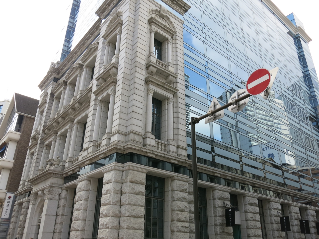 馬車道にあるレトロな建物です。神奈川県立歴史博物館のすぐ近くにあります。設計者は横浜生まれでドイツに留学した矢部又吉という人物だそうです。現在は損保ジャパンの横浜馬車道ビルとして現役で活躍しています。上層階はガラス貼りになっていて、歴史的建造物と現代のモダンな建築が融合しています。