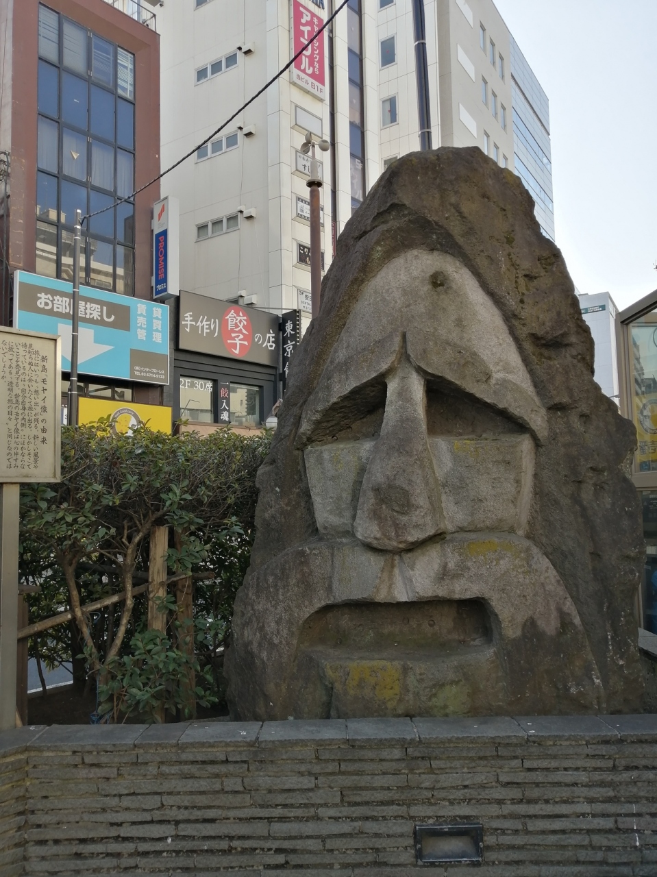楽屋弁当で有名な鳥九さんのお弁当を食べてみたくて、それだけのために新幹線を品川で降り、蒲田駅まで行ってみました。駅前の信号を渡ると、え?!なんでこんなところにモアイ像がいるの???という感じで鎮座されておりました(笑)