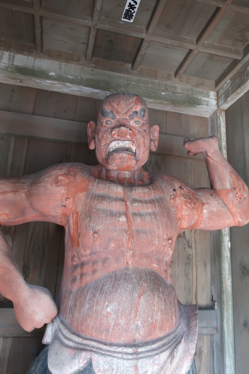 沖縄県で現存最古の木彫像です。1737年に、久手堅昌忠という人が彫ったものなんだそうです。1771年の明和の大津波で2体とも流されたが、崎枝湾の海岸に打ち上げられているのを発見されたという、なかなか波乱万丈な歴史を持つ仁王像たちです。素朴で力強い印象を受ける、すばらしい彫像だと思います。