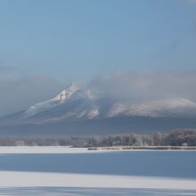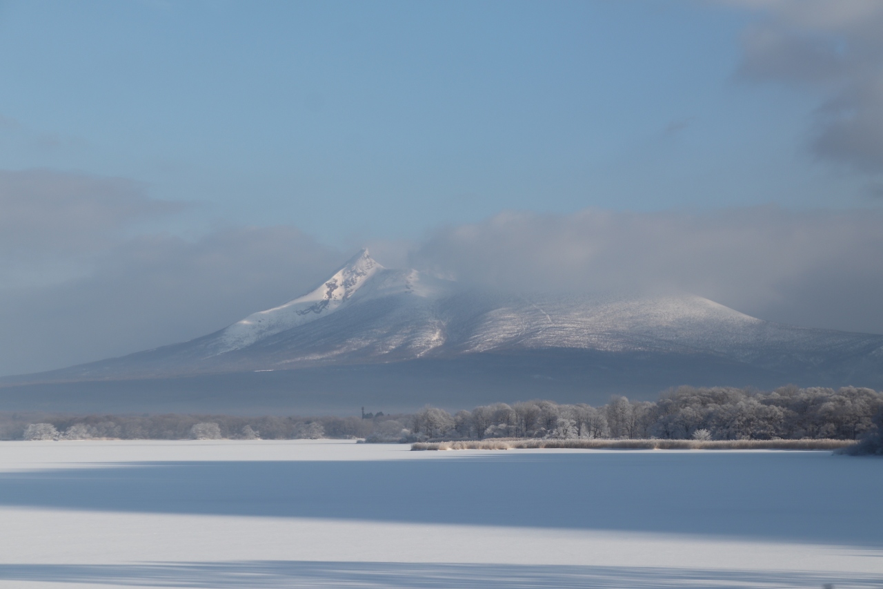 北海道の最初の絶景です。函館から函館本線の普通列車で訪れました。新幹線駅の新函館北斗を出て、仁山の山越えをすると、トンネルに入ります。トンネルを抜けると左手には氷結した小沼、そして背景には駒ヶ岳が美しい姿を見せます。鉄道で北海道を訪れた時の最初の絶景といえます。