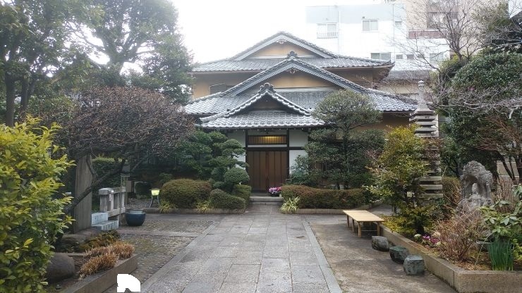 石畳が整備された境内はコンパクトだが庭木もあり落ち着いた雰囲気。正面の本堂の建物も庭木と調和しており良い雰囲気だった。境内左側に玉川上水を開削した玉川兄弟の墓があり、結構立派だった。