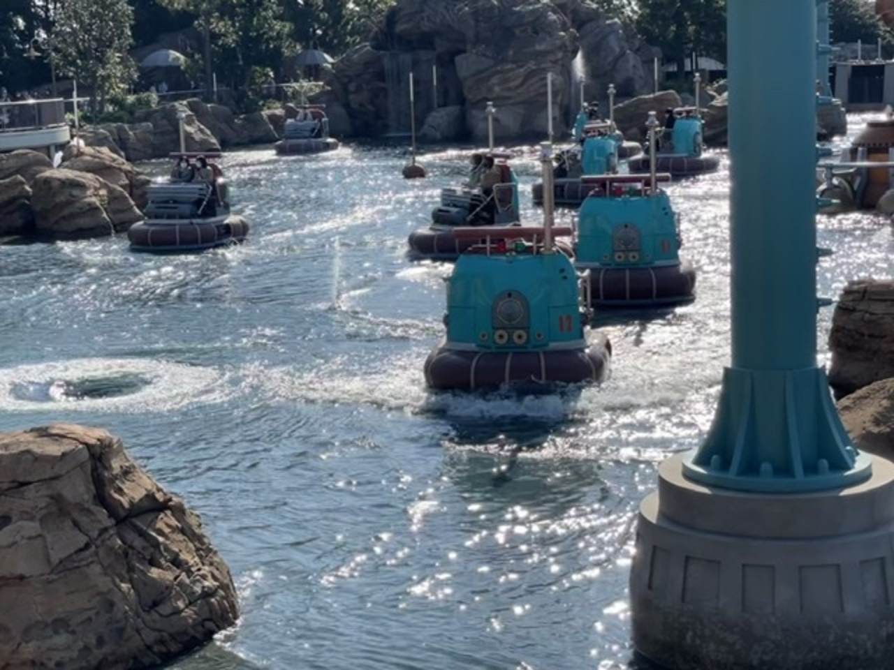 水上を不規則に動く乗り物で進んでいくアトラクションです。