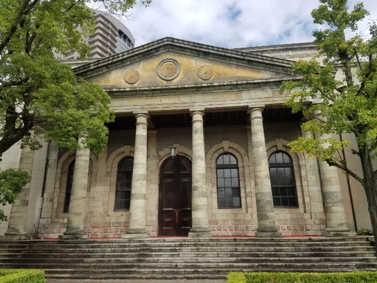 泉布観の隣にギリシャ神殿のような建物がありました。こちらも重要文化財で現在は結婚式場になっているとのこと。建物が大きいので入り口がある一つの面だけでも大迫力です。様式が異なる2つの重要文化財がすぐ近くで見られて面白いですね。