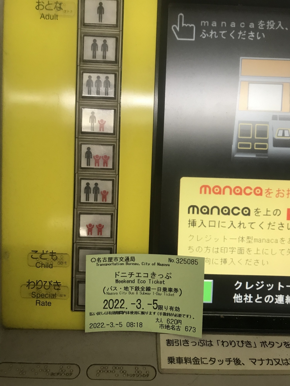 名古屋市営地下鉄ドニチエコきっぷ620円で市バスもフリー