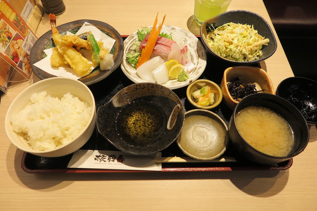 2020年にオープンした「日比谷グルメゾン」の一角にあるお店です。オフィス街の週末の昼、コロナの影響、知名度などもあってか、お客さんは私だけでした。“板前バル”というコンセプトのお店の雰囲気が気になって入店してみたのですが、洋風の軽い感じの店内に本格的和食、ミスマッチと感じましたので、あえて2度目はないかな。「お刺身と天婦羅の御膳」は関西風の味で良かったのですが、ランチで1600円であれば、立派なデザートやコーヒー・紅茶が付いていて欲しかったなぁ。