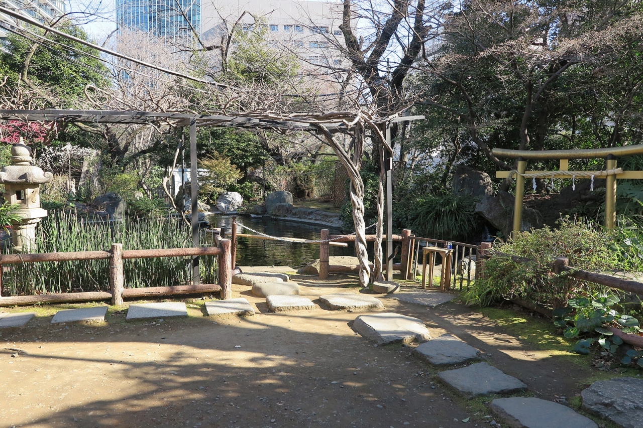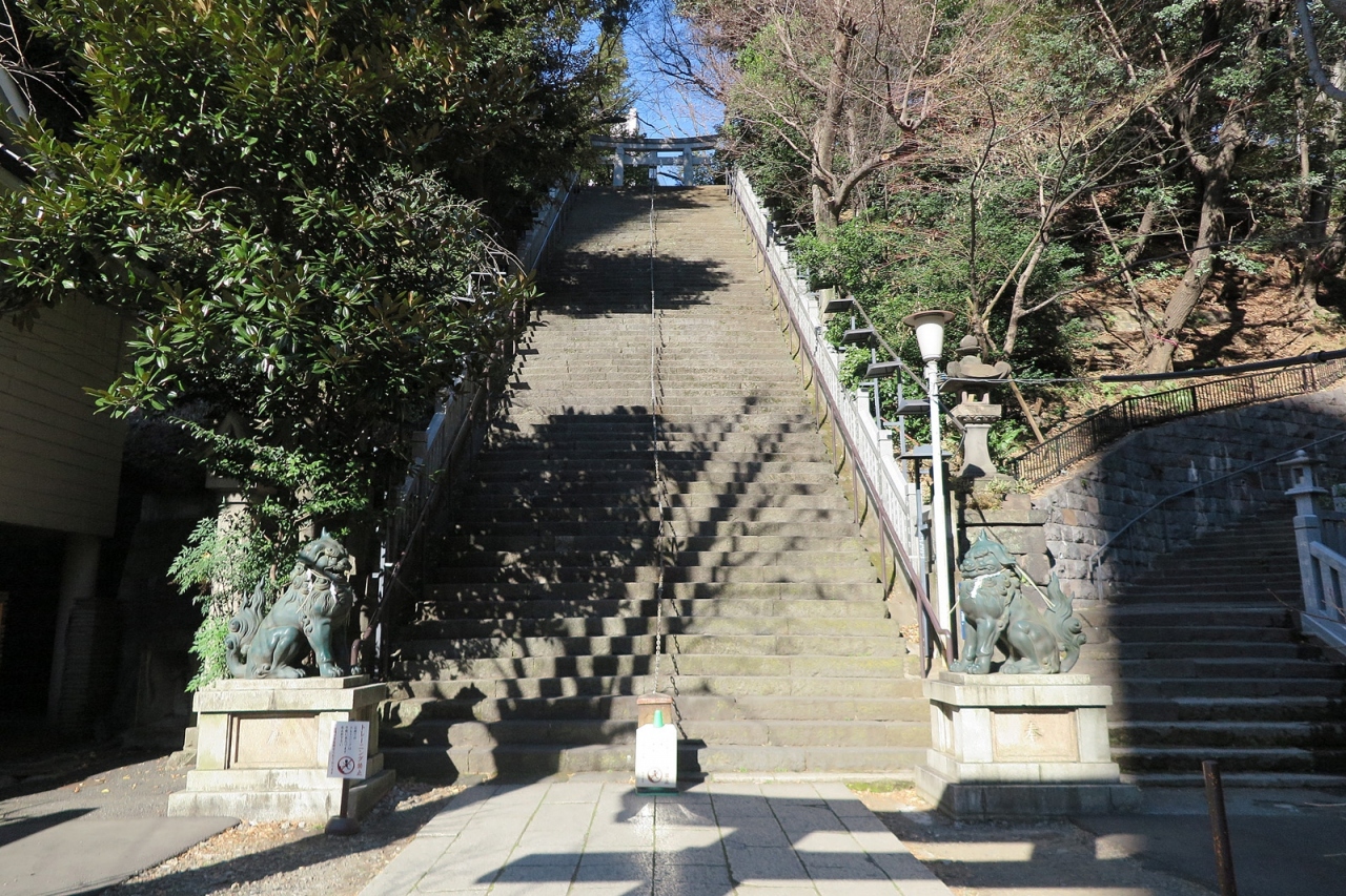 - 伝説の「出世の石段(男坂)」は必見、江戸町最高峰からの眺めは今や想像に頼ることになりますが、高所にありながら立派な池と、社務所のニャンコ
