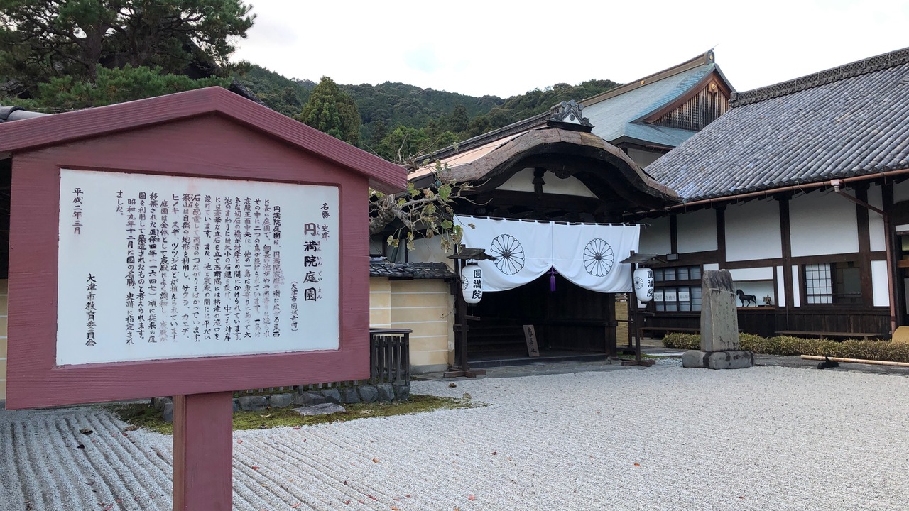円満院は、三井寺の境内に隣接しています。門跡といって、皇族に関係のあるお寺のようです。円満院の庭園は「三井の名庭」と呼ばれる美しい庭です。相阿弥の作といわれ、池泉鑑賞式のお庭です。境内には、大津絵美術館もあります。