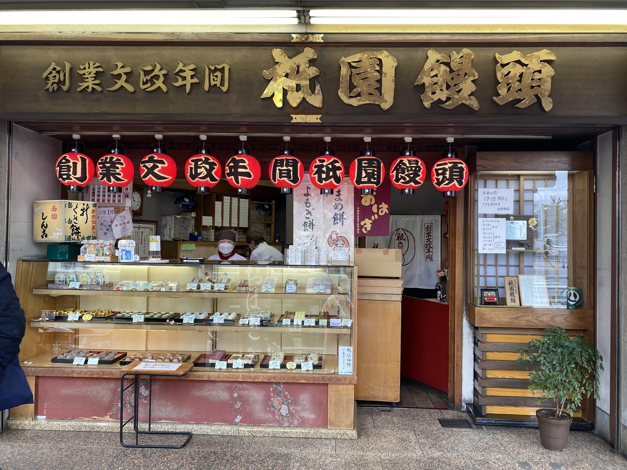白川沿を歩いている時、人だかりが出来ていて、ググってみたら祇園饅頭の工場でした。南座の隣にお店があったので、購入してみました。しんこはもっちりした食感です。おひとつからでもどうぞと