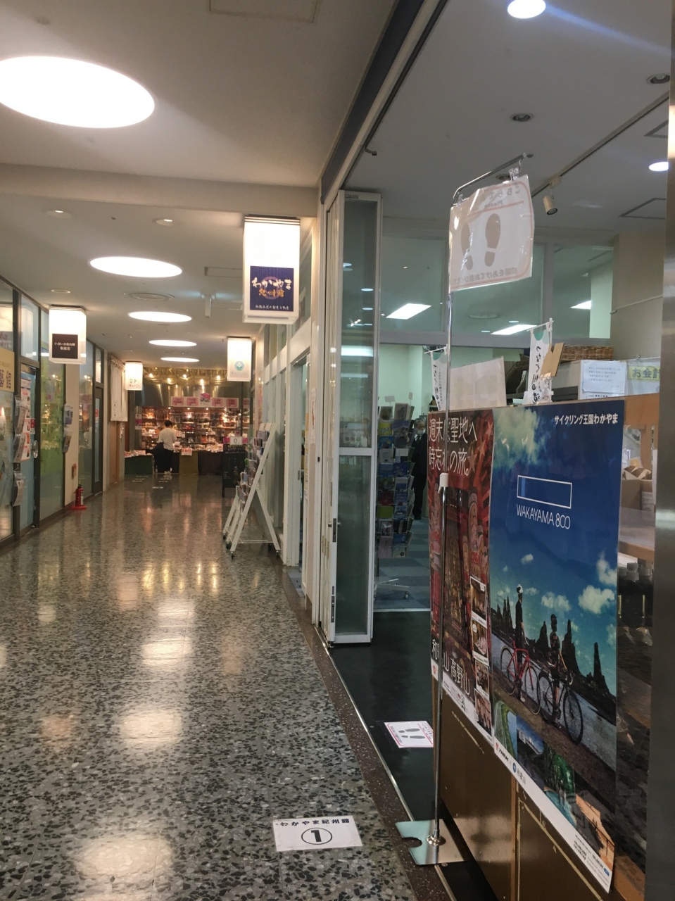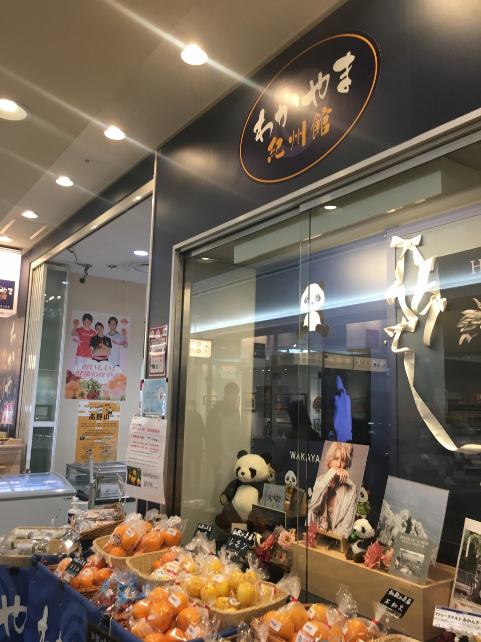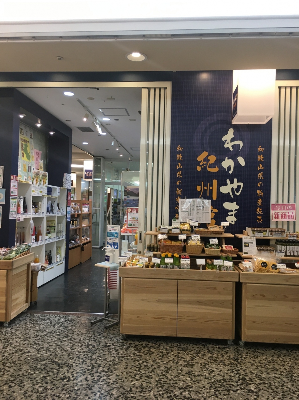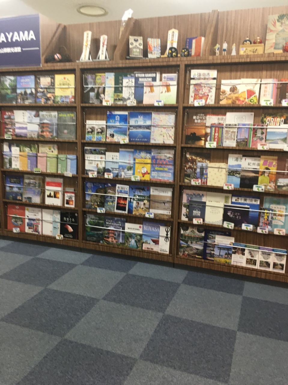 地下鉄に向かう通路沿いの店は食品コーナーで和歌山の物産品やみかんが置いてあり、パンダの縫いぐるみもありました。裏側が観光コーナーで、パンレットと宿情報が充実していて、ガイドブックでは入手できない情報を得ることが出来ます。