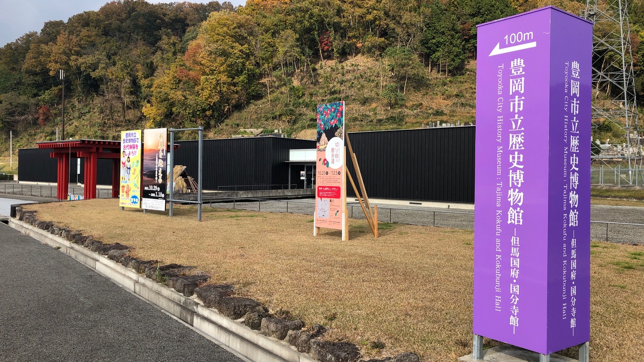 JR江原駅から徒歩15分ぐらいの場所にあります。豊岡市街地からは遠く離れた場所です。この辺りに但馬国府があったことから、この場所に博物館が建てられました。但馬国府と但馬国分寺に特化した珍しい博物館でした。