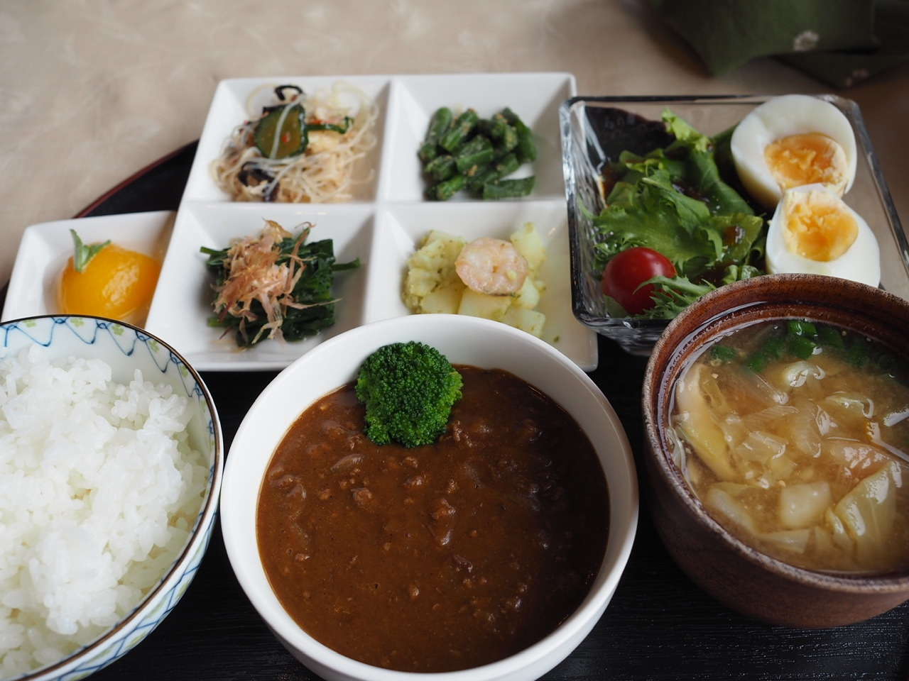 伊豆旅行は魚はたくさん食べるけど野菜不足になりがちなので、野菜を補給しよう!と伺いました。店内はカジュアルで明るい雰囲気。金曜日の12時半過ぎでしたが、数量限定のランチセットはまだあるとのことだったので注文。メイン料理が何種類かから選べるのですが、迷ったあげくキーマカレーにしてみました。自家栽培のお米と野菜を使ったお料理はどれも家庭的な優しい味で美味しかったです。食後にチョコレートが添えられたコーヒーが付いて1,320円でした。