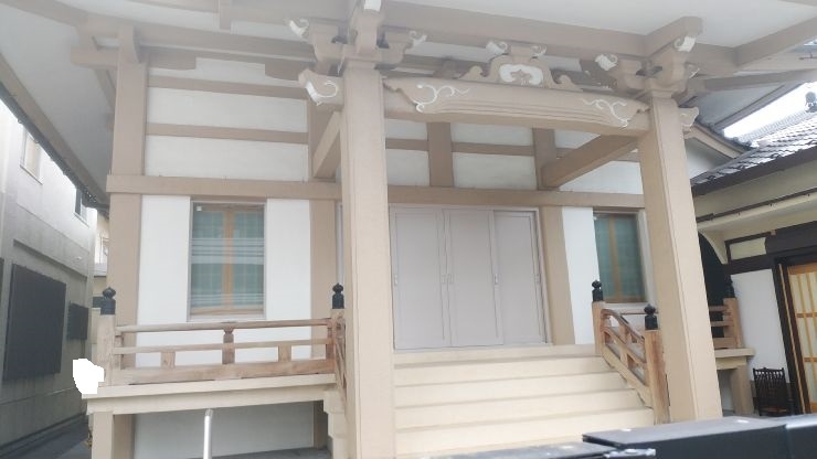 左衛門通り沿いの交差点付近に入口が開かれいる。周辺の寺院の例に漏れずこちらも境内の敷地は無く、都市部の戸建てにみられるような土地利用のされかただった。本堂の建物は屋根まわりや柱の雰囲気などお寺らしさが感じられた。全体的にはよく整備された寺院だと感じた。