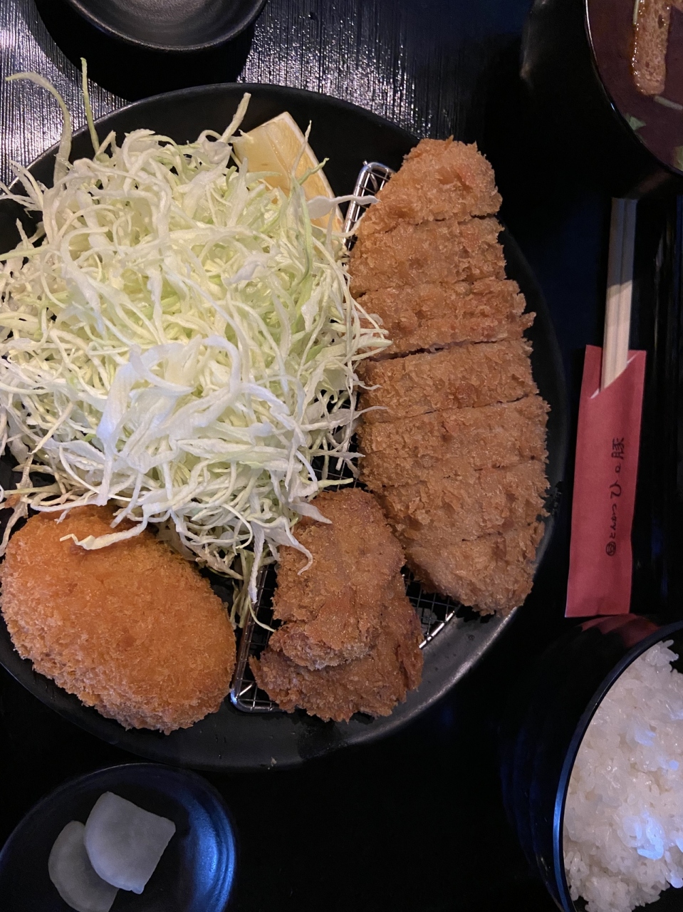 前から気になっていて、初めていったトンカツ屋さんです。ヒレとんかつ、ロースとんかつ、ミックスとんかつの他にカキフライ、カニクリームコロッケ、エビフライ、コロッケ、など自分の好みに合わせて追加注文などできます。
