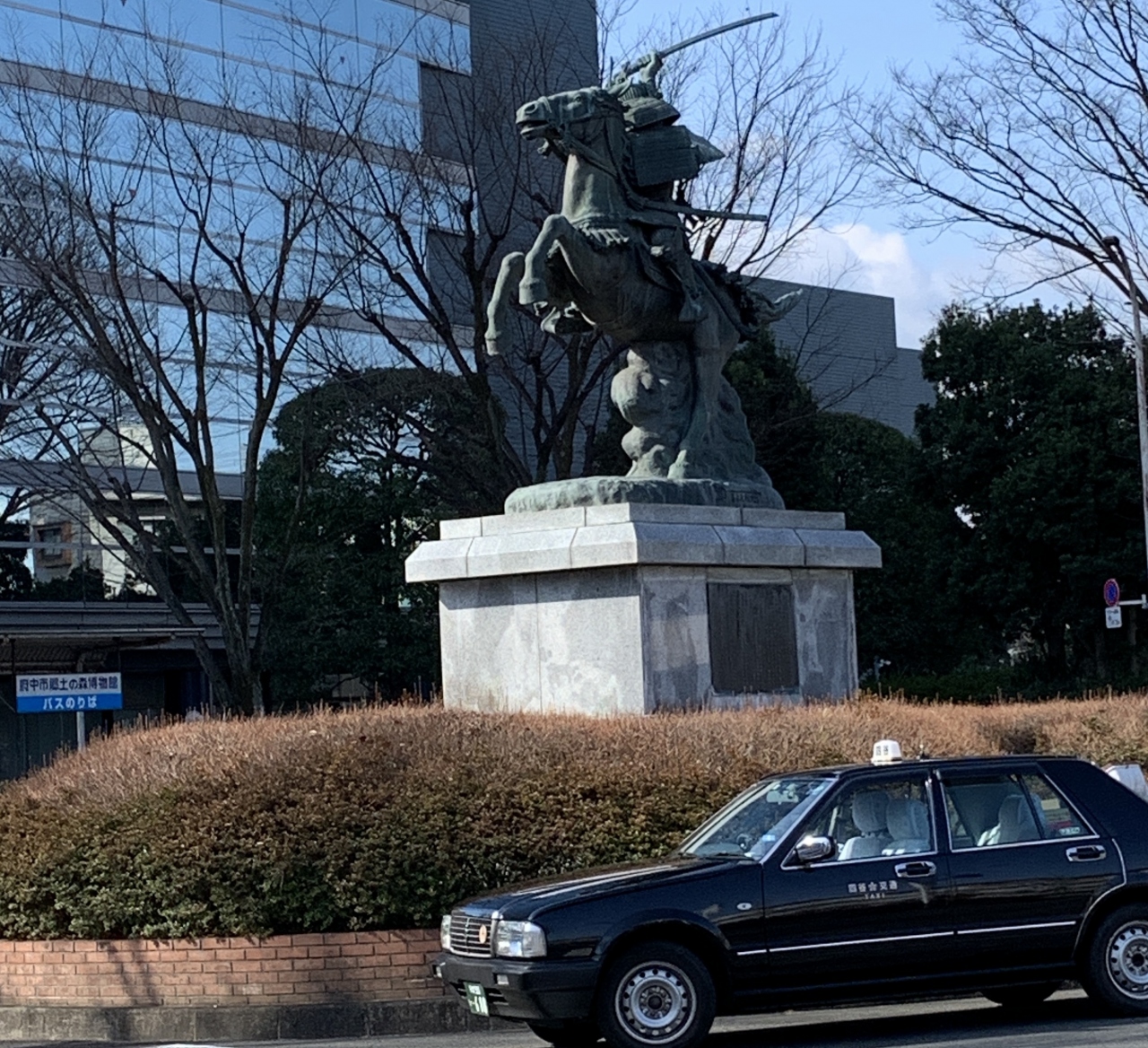 駅前ロ-タリ-中央、バス/タクシ-乗り場にあるのでも逃す事は無いだろう。府中は武蔵の国衙所在地で古来より東海道、奥州道、鎌倉道の集う所。新田は上州から鎌倉を目指して進軍、駅近くには新田と鎌倉幕府軍で戦った古戦場がある。