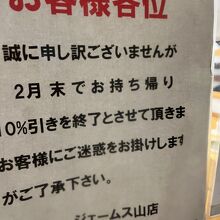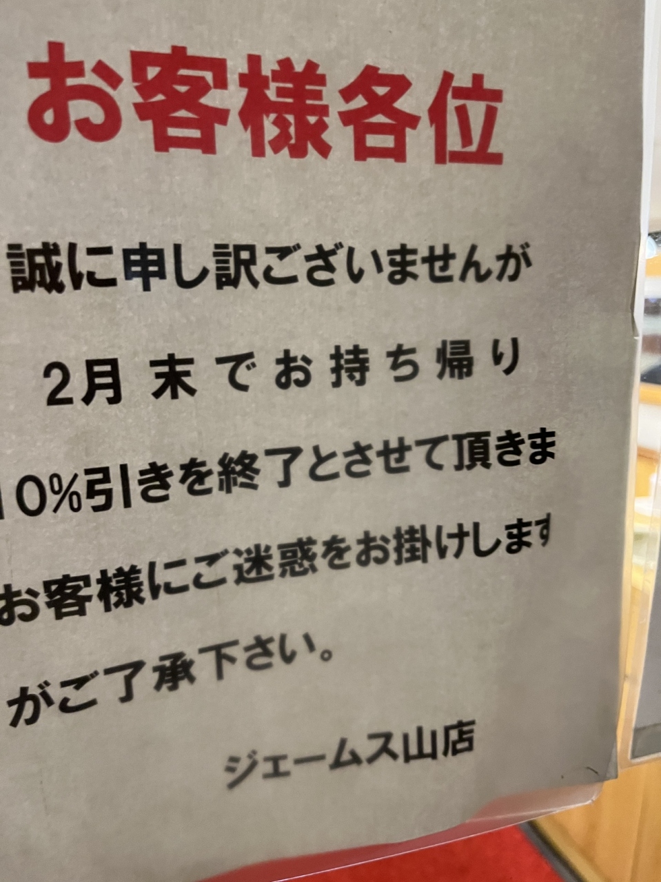 『お持ち帰りの割り引きが2月末で終了』になったご案内が貼ってありました。