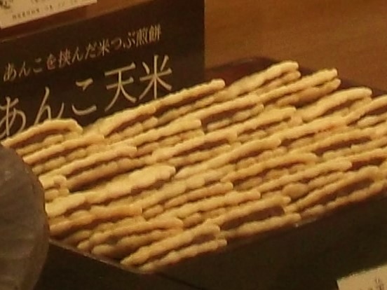 日暮里駅構内のエキュートにある、東京・葛飾青砥が本店のおせんべいのショップです。米粒の形の残ったせんべいに北海道産小豆のあんこを挟んだ「あんこ天米」が販売されていました。せんべいの塩味とあんこの甘みとのバランスが絶妙で、ひと味違うせんべいを味わえました。