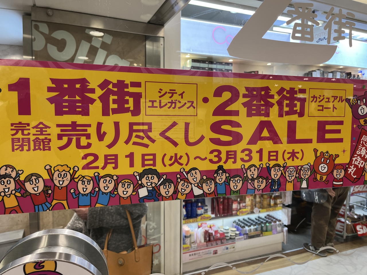 『1番街(シティエレガンス)・2番街 (カジュアルコート) 完全閉館売り尽くしSALE 』開催中でした。