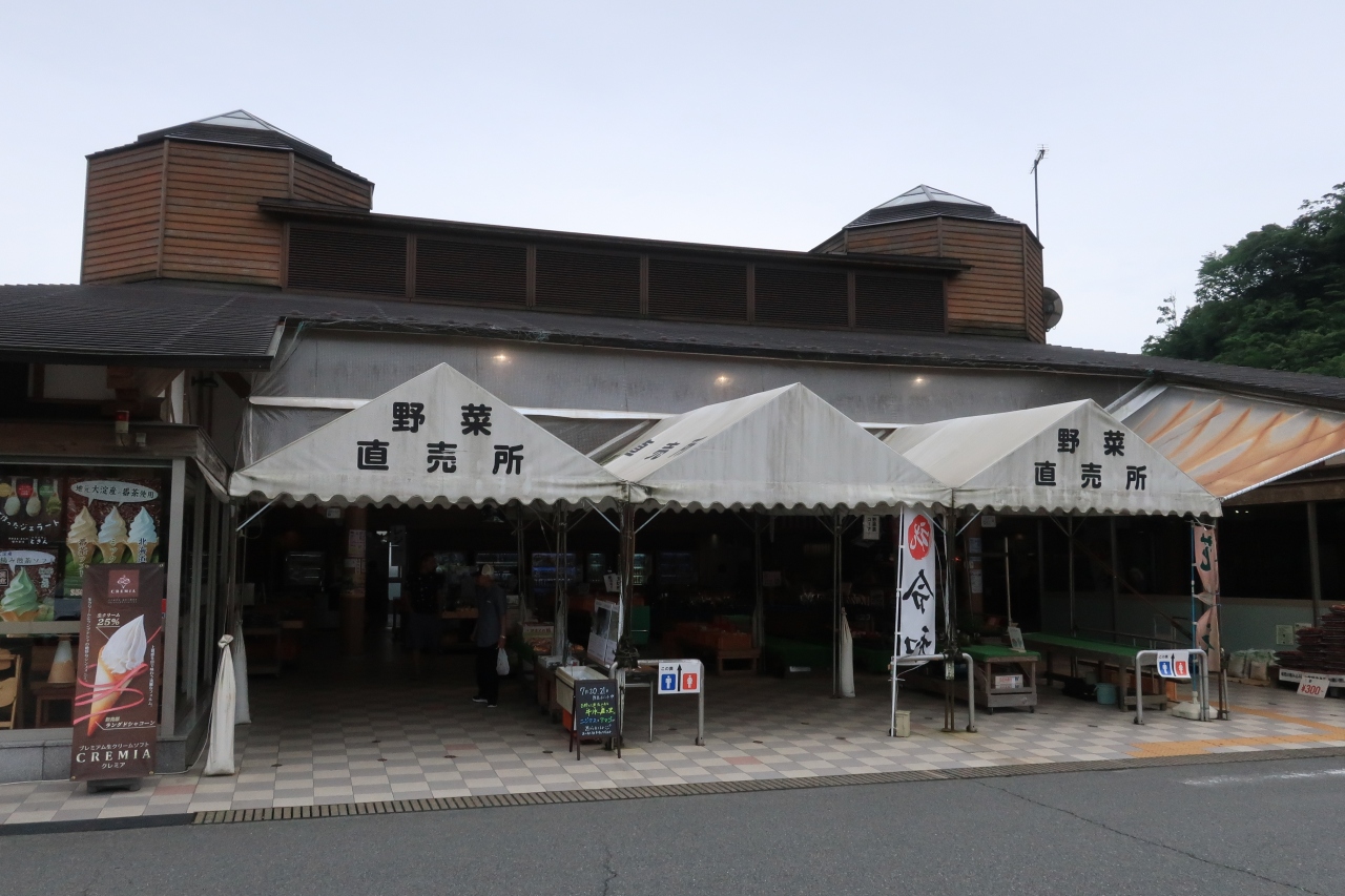 この日は吉野山にドライブし、寺巡り。最後に壺坂寺へ向かう途中でこの道の駅を見つけた。道の駅は風光明美な場所に建つケースが多いが、ここは周辺が土砂採取場となかなかの場所にある。ただ、そのせいか駐車場が広い。吉野杉をふんだんに使ったという建物は少し変わった形だ。 屋根に明かり取りが二つあるが、これは修験者の額につける「頭巾(ときん)」をデザインしたという。店内は広い。野菜売り場が二カ所に分かれており、安価で品数が多い。さらに奥には吉野杉の製品、例えば割りばしなど特産品が並んでいた。この日は旅行中だったので購入を断念したが、ここの野菜、総菜は価格も含めて魅力だ。