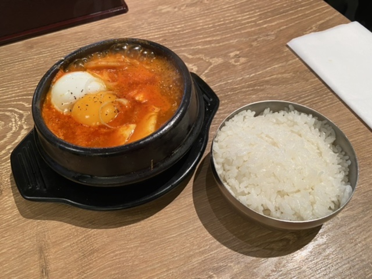 スンドゥブチゲフェアをやってました。食べたのはキムチスンドゥブ990円!ご飯はおかわりできます。