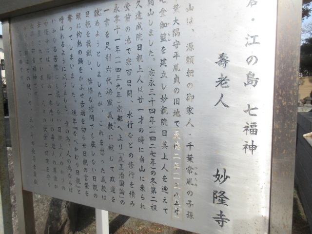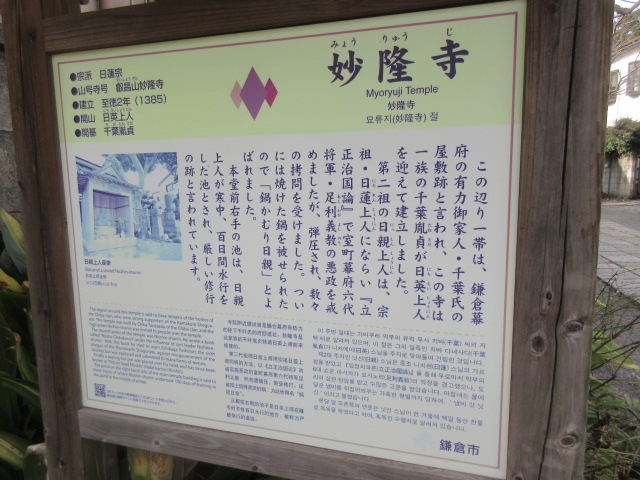 鎌倉にあるお寺の一つです。鎌倉駅から徒歩でアクセスできます。鎌倉七福神のひとつ、寿老人はこちらのお寺ですので、境内に寿老人を祀る建物もありました。日蓮宗のお寺で、昔は千葉屋敷と呼ばれた、千葉氏の館があった場所だそうです。門も立派なお寺でした。