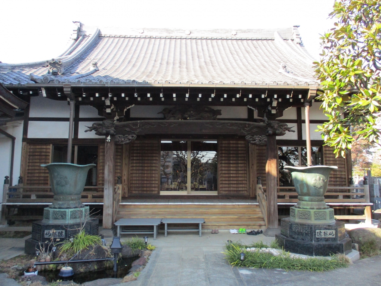 谷中のお寺巡りをしていて、7丁目付近に来た時に立ち寄ったお寺です。寺門前に立て看板があって、境内にメダカや金魚がたくさんいますと書かれていたので、早速見に行きました。確かに本堂に向かう参道脇には、器が並べられていて、中にメダカがたくさん泳いでいました。本堂脇の池には金魚も泳いでいて、とても面白いお寺だと思いました。
