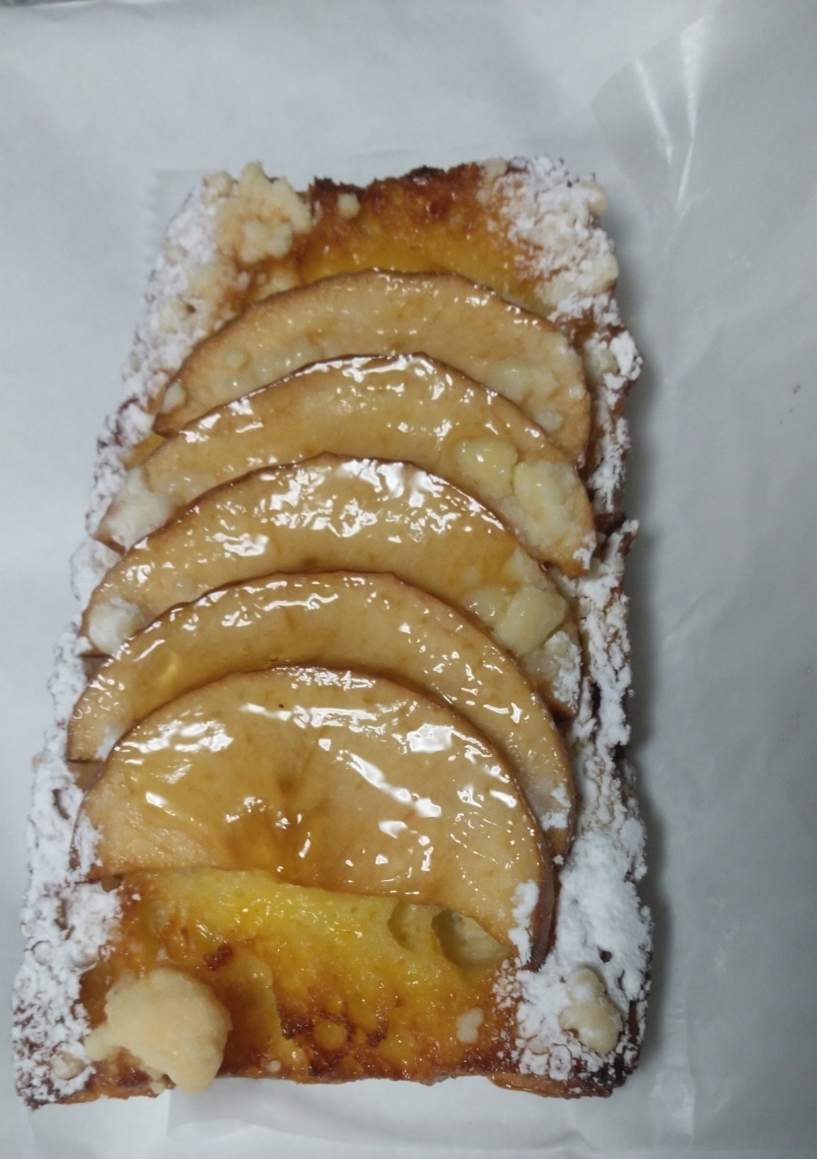バケットのフレンチトーストの上にリンゴスライスが乗っていますが、リンゴの味があんまりしないのでなくてもよかった・・・