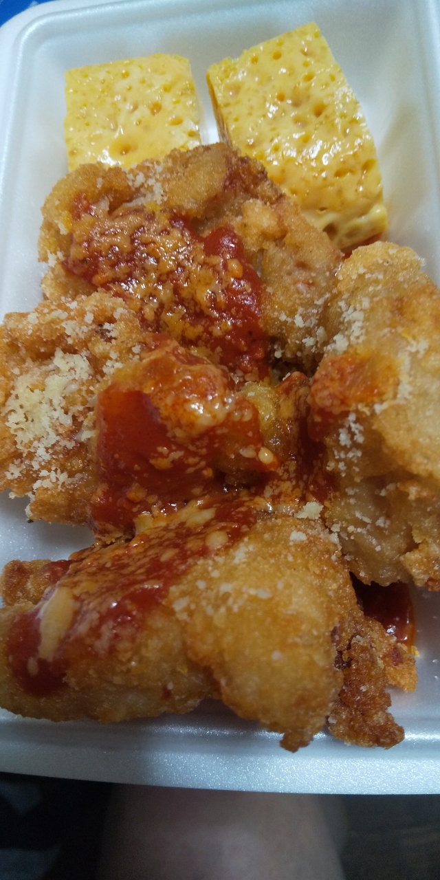 お隣もフライドチキンの店というチキン屋が並ぶ新習志野駅前。唐揚げのお弁当やカレーライスを販売しています。唐揚げは肉厚でジューシー、オーダーを受けてから揚げる様です。テリー伊藤プロデュースの玉子焼も出汁が利いて旨い。