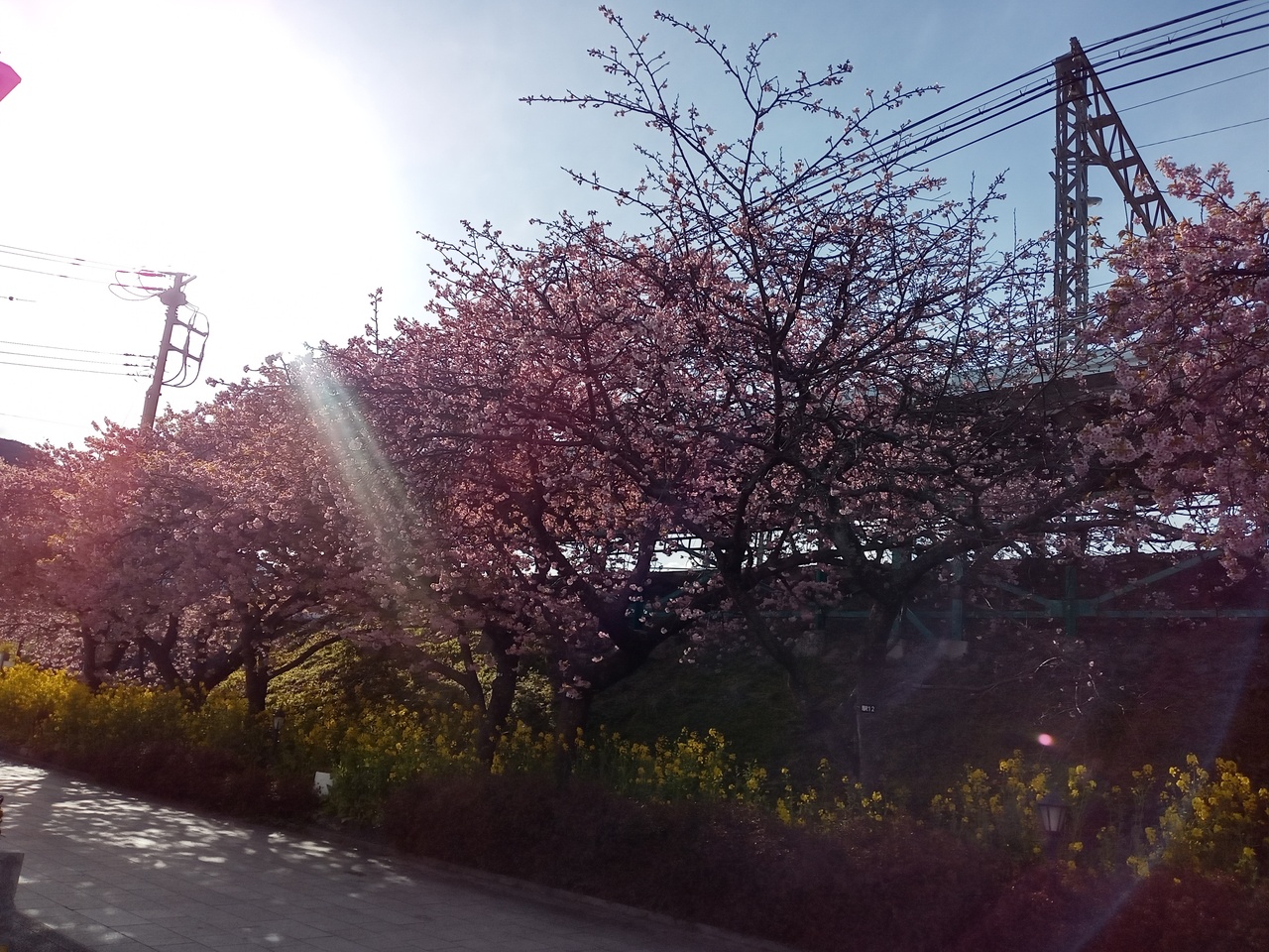 町のあちらこちらに河津桜が咲いていて綺麗です。