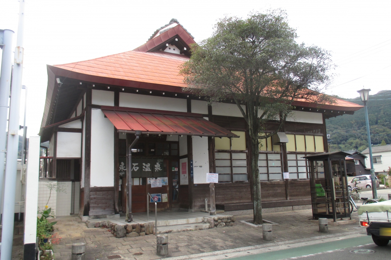 永石温泉は、別府市の南部、竹瓦温泉と浜脇温泉の中間辺りといったところにありました。ここは別府八湯の中の別府温泉エリヤとなります。この場所での開湯は新しく1956年(昭和31年)で、現在の木造の建物は1968年(昭和43年)の築造とのことです。浴槽は別府の小さめな温泉の標準的なサイズで5~6人が入れる大きさです。全体として、別府共同浴場の標準タイプの様に感じました。別府八湯温泉道には第6番として登録されています。