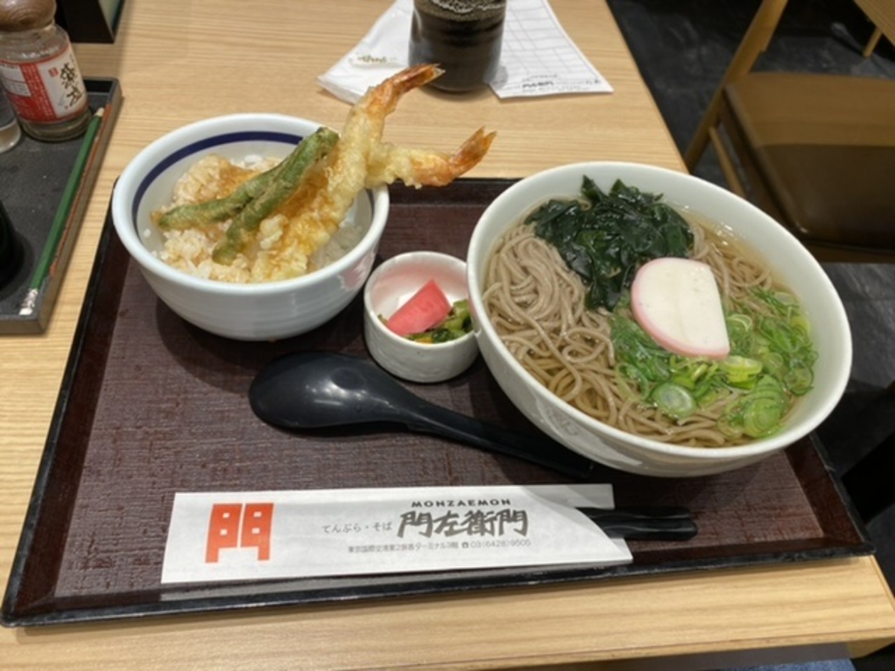 食べたのは朝のざる天丼1,020円!蕎麦は温かい方に変えてもらいました。朝食取れて良かったです。
