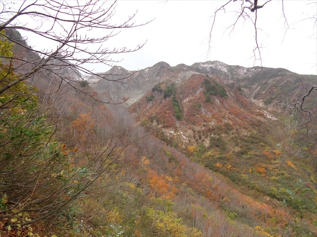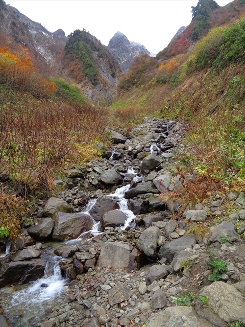 人気の日本百名山で,夏山の高山植物も人気ですが,秋の紅葉も人気が高い山です.登山した日は生憎頂上が濃霧で雪もあったため,視界はほぼ0でしたが,途中までは晴れ間も見えて紅葉もとてもよく見えました.紅葉の見所の一つが水場もある荒菅沢で,雨飾山の頂上付近を見ることが出来ます.登山客の殆どはここで一休みしてから頂上を目指します.なお,雨飾山には途中トイレがないので,登山口のキャンプ場で携帯トイレを購入して行かれると良いと思います.